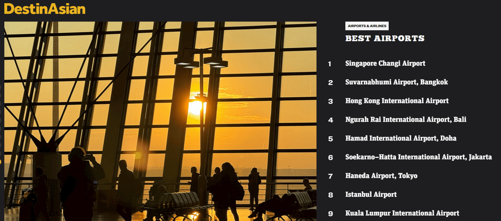 DestinAsian is a magazine that celebrates travel in the Asia-Pacific region. Its 17th annual poll asks readers to vote for their favorite travel spots, including hotels, cities, islands, and airlines.