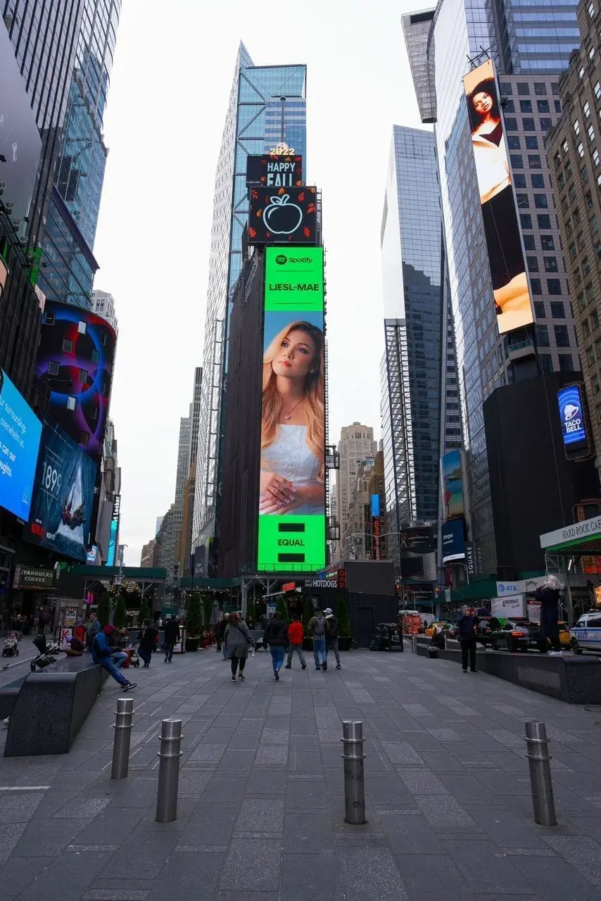 Following the first appearance of Evan’s photo on the Billboard, another photo of his was displayed four months later, this time featuring Malaysian singer-songwriter Liesl-Mae.