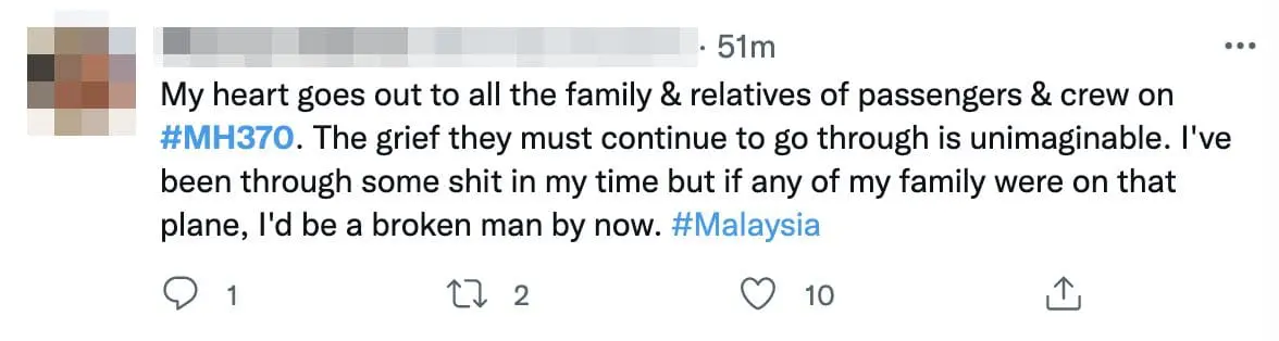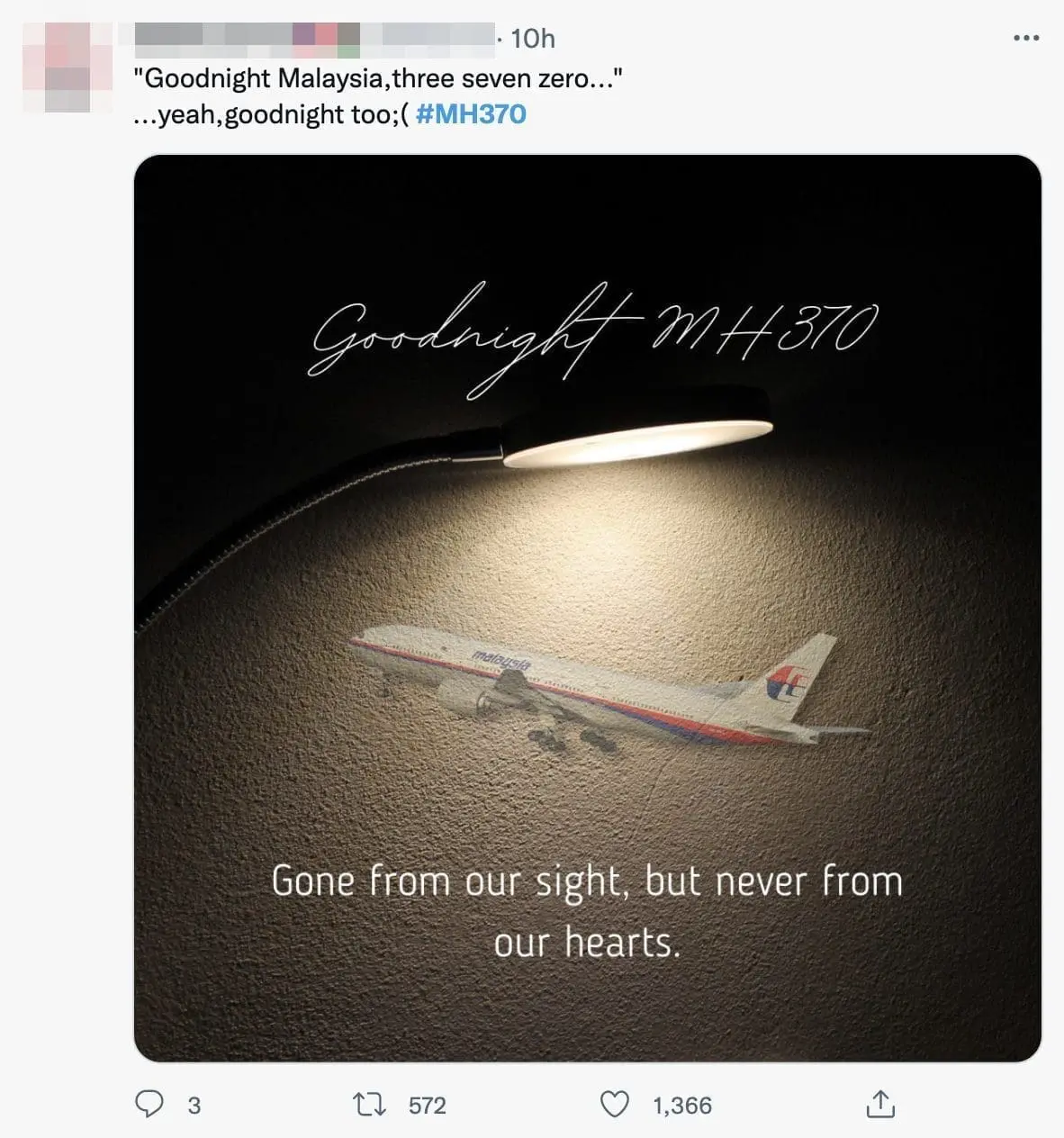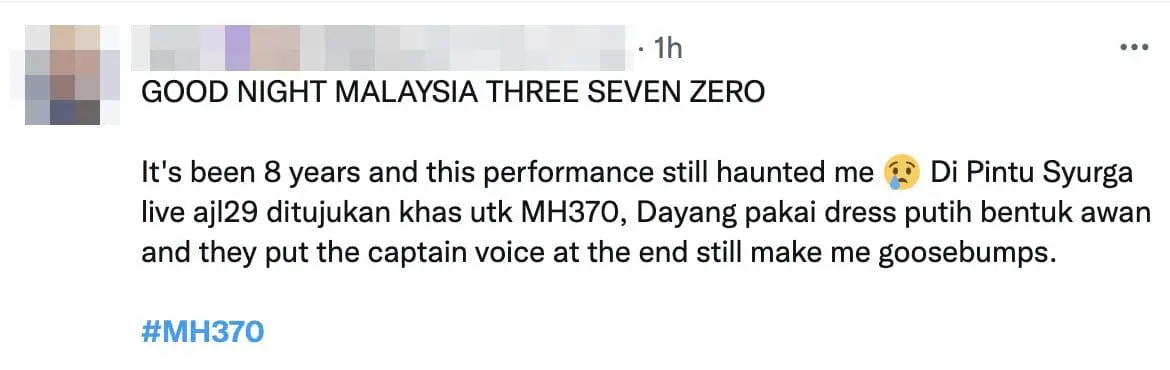 Others uploaded posts that paid tribute to the flight’s final words: “Good night, Malaysia Three Seven Zero.”