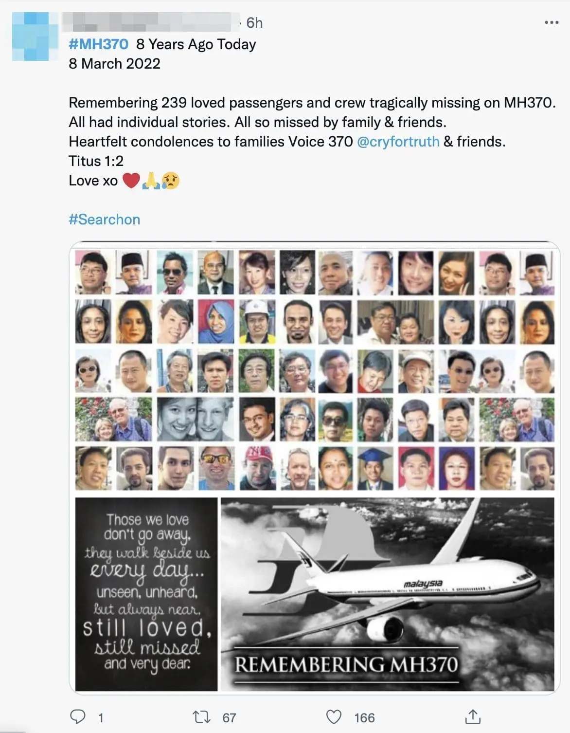Let’s continue to have faith that the truth will be revealed soon! #RememberingMH370