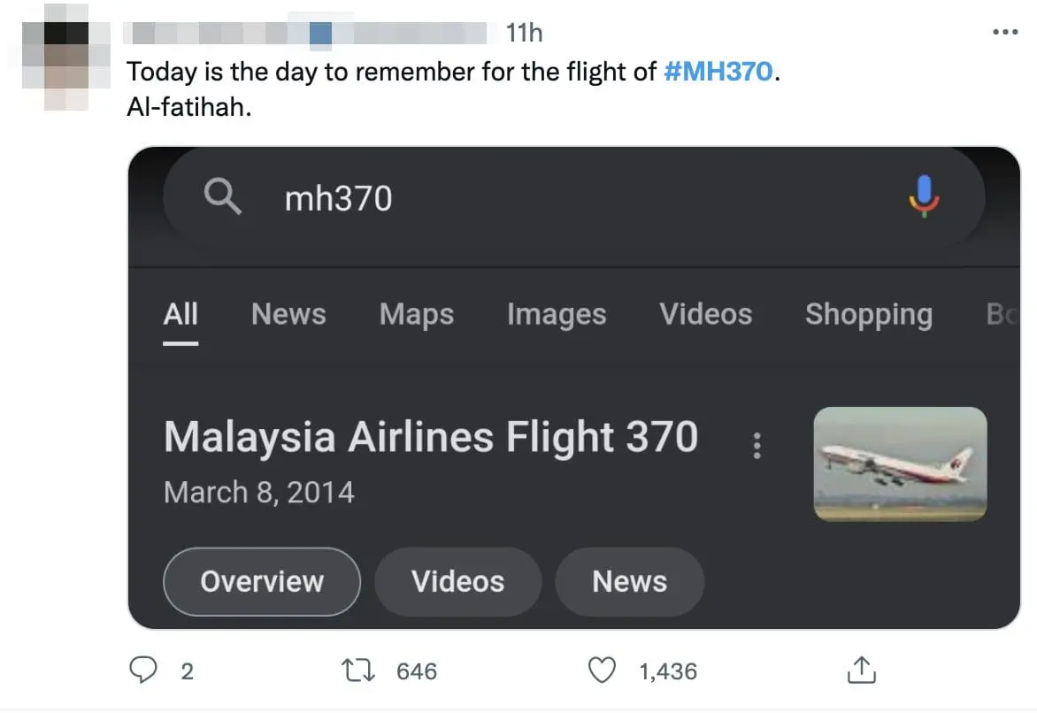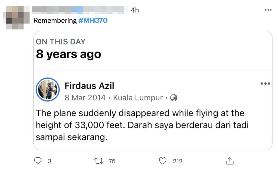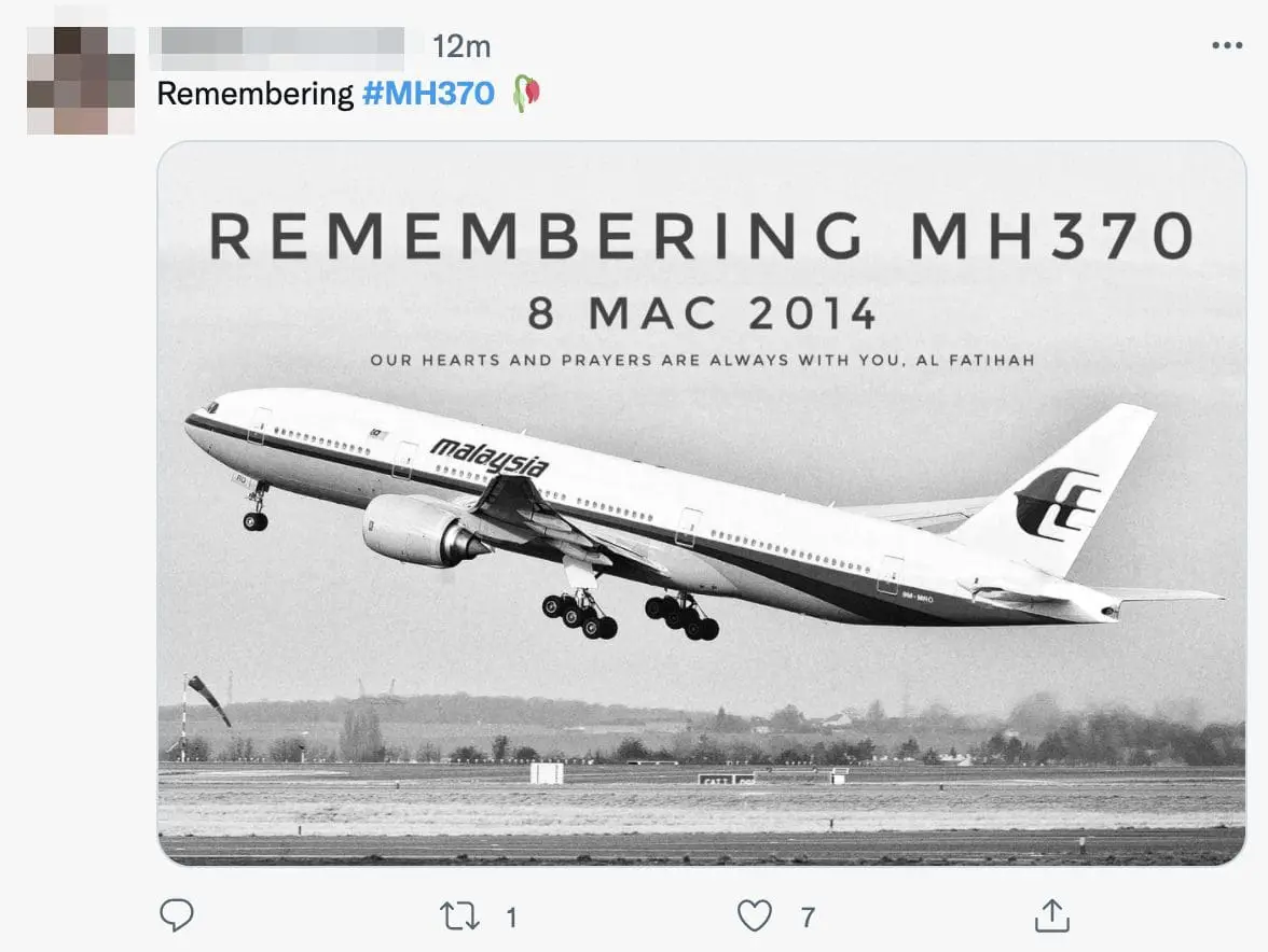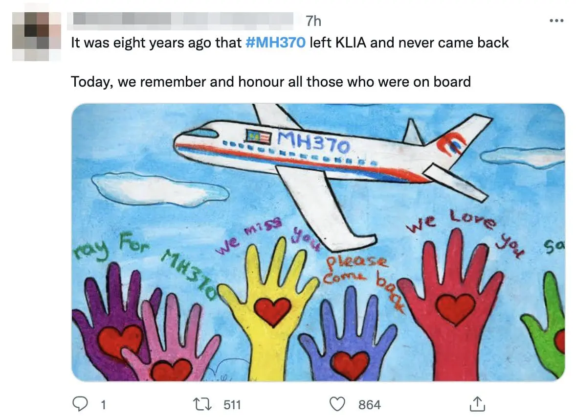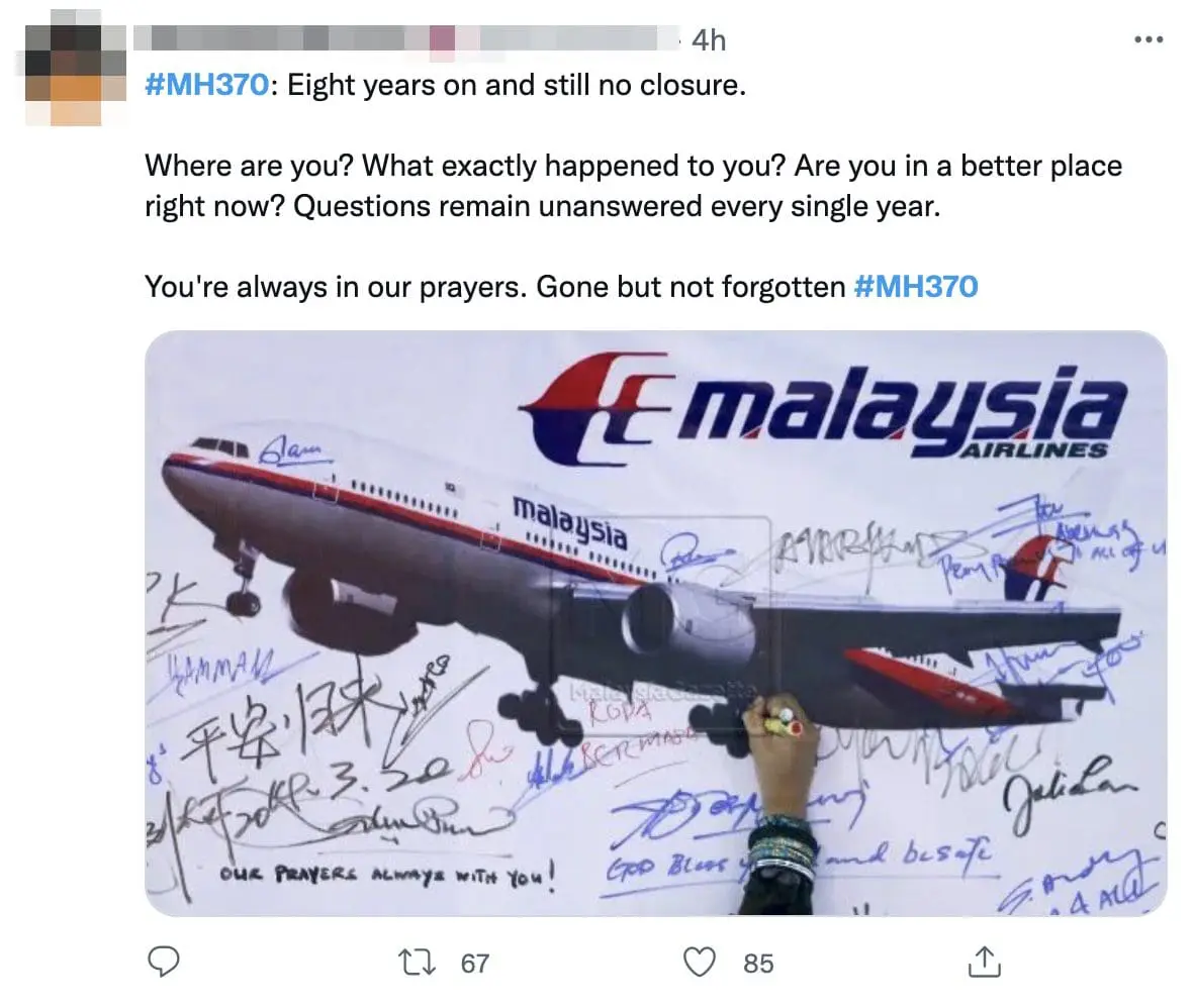 KUALA LUMPUR – Malaysians paid tribute to the missing aircraft MH370 on Twitter eight years after its fateful flight.
