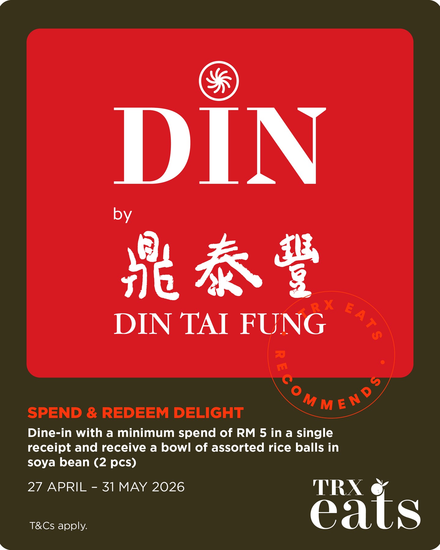 Then there’s DIN by Din Tai Fung, where spending just RM5 in a single receipt gets you a bowl of assorted rice balls in soya bean. Yes, RM5… and you can walk away with a sweet treat.