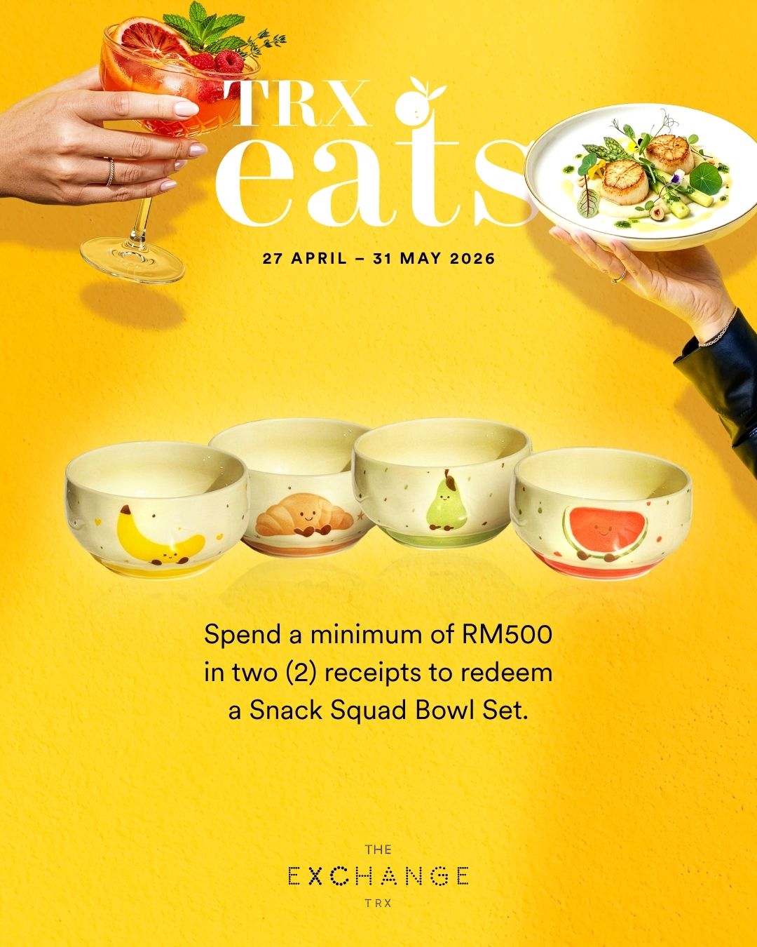 Those who spend RM500 across two dining receipts on the same day can unlock a Snack Squad Bowl Set instead.