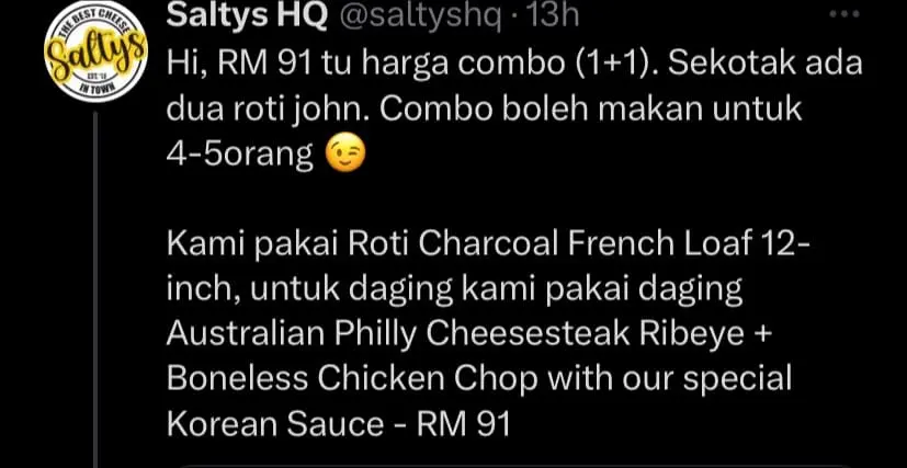 However, a recent post on Twitter shared that a store is selling a pair of Roti Johns for a whopping RM91, sparking intense debate online.