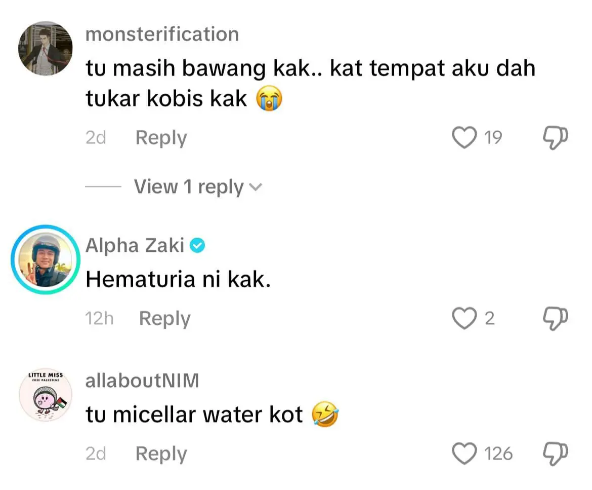 Menelusuri ke ruangan komen, warganet terhibur melihat tekstur cuka bawang itu dan ada juga yang berpendapat ia seperti bahan uji kaji sains di makmal.