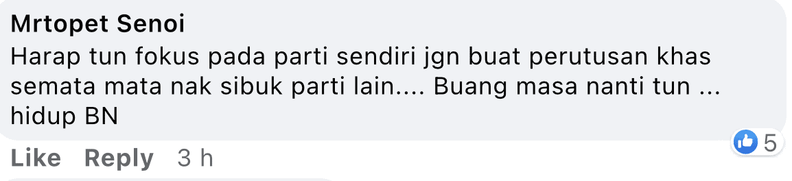 Another wrote that Mahathir should focus on the issues currently faced by hhis party before ending it with “Hidup BN” (Long live BN).