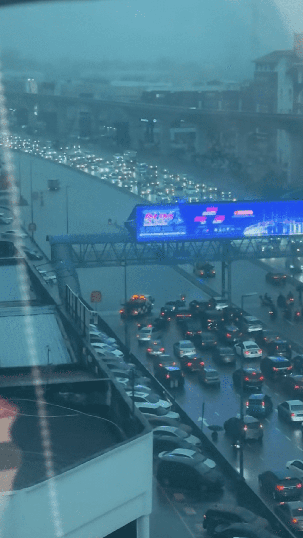 Despite the water retreating, many drivers were left stuck in long traffic jams during the post-flood chaos.