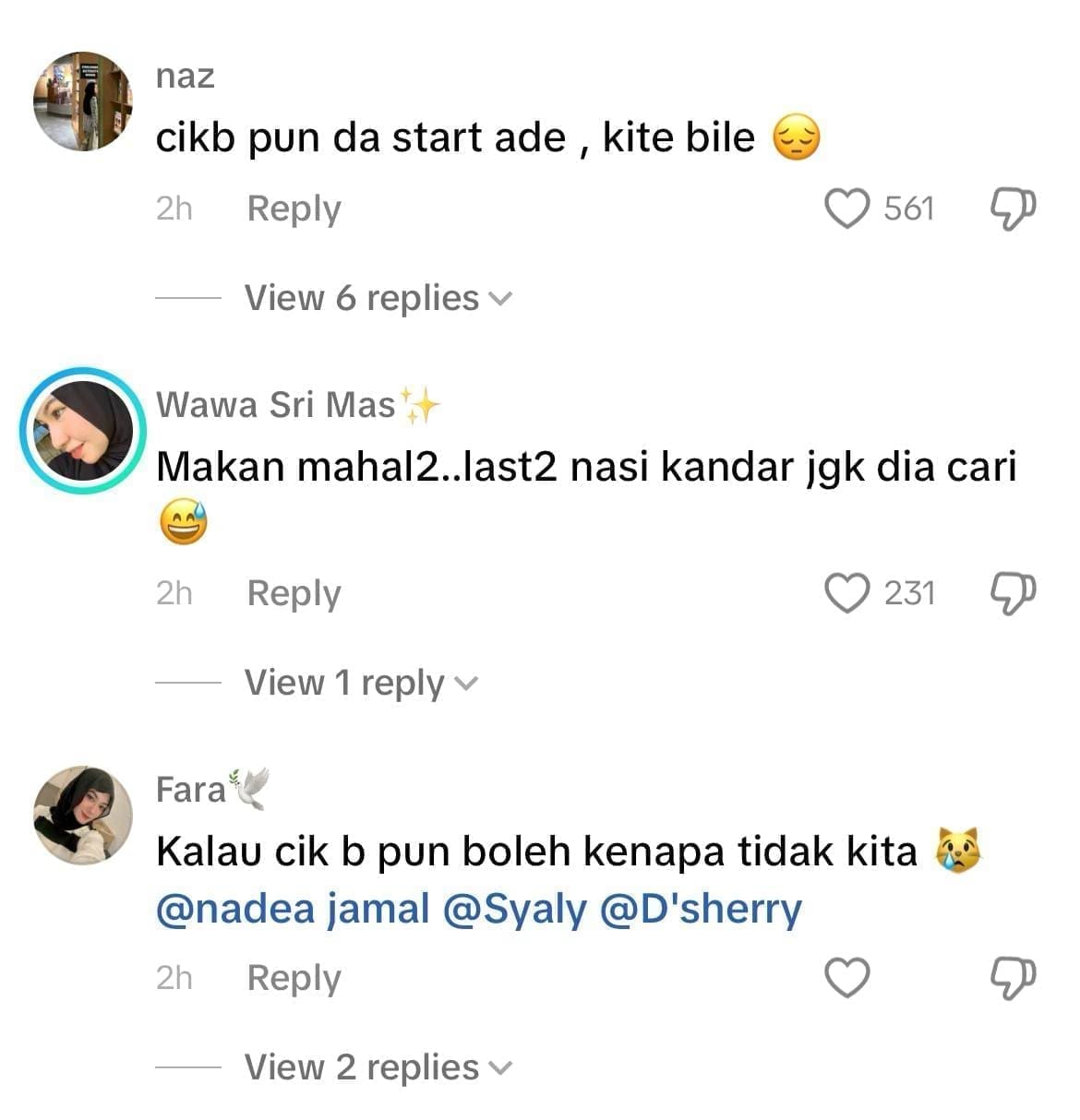 Bukan itu sahaja, lebih mencuit hati apabila Cik B menikmati nasi kandar selepas pulang dari restoran mewah itu kerana meninginkan nasi yang lebih kenyang.