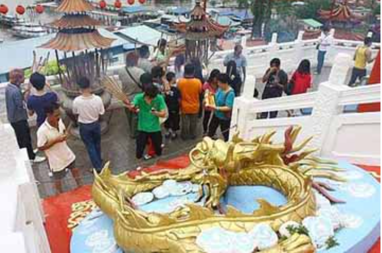 The temple, which is located near a Malay fishing village known as Kampung Muara Tebas along Sungai Sarawak, is a popular spot for Buddhists devotees to perform their prayers.