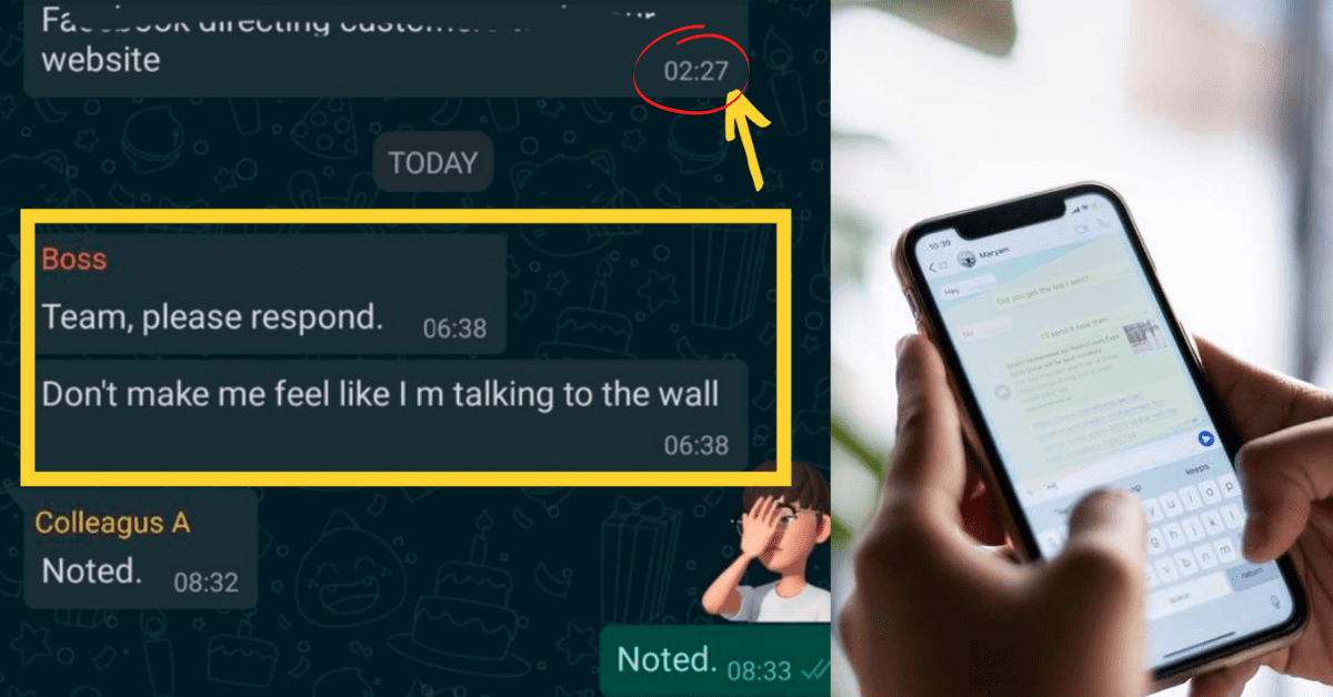 Recently, a Facebook page named Boom Go Employee shared a Whatsapp conversation screenshot submitted by a netizen. The screenshot shows a company group chat where the boss texts at 2 am and naturally, no one responds.