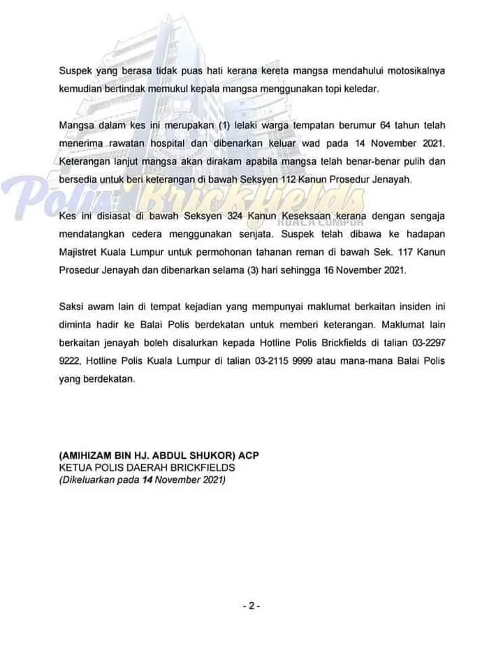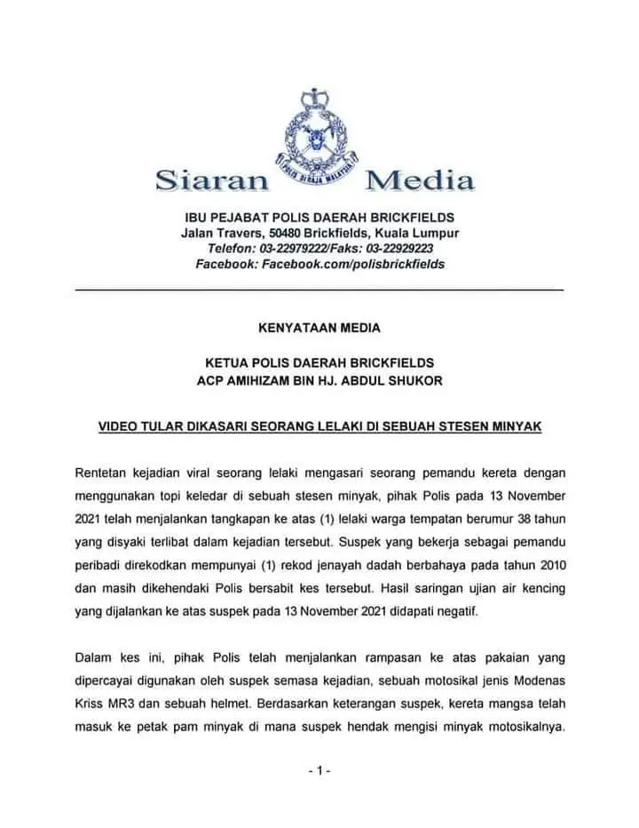 Amihizam added that the suspect had claimed the victim had purposely cut him off while he was about to refuel his motorcycle, causing him to become upset and attack the victim.