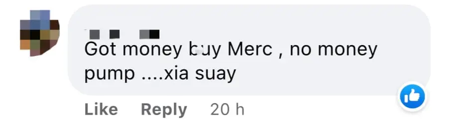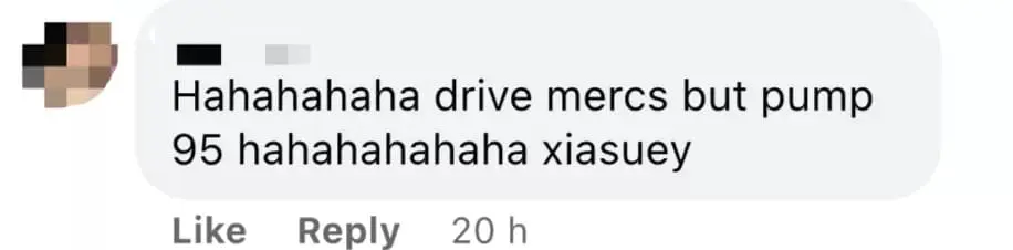“Hahahahaha drive Mercedes but pump RON95, xia suey”