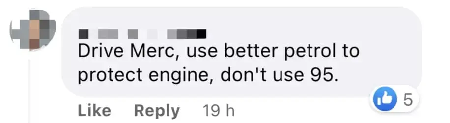 “Drive Mercedes, use better petrol to protect engine, don’t use RON95.”