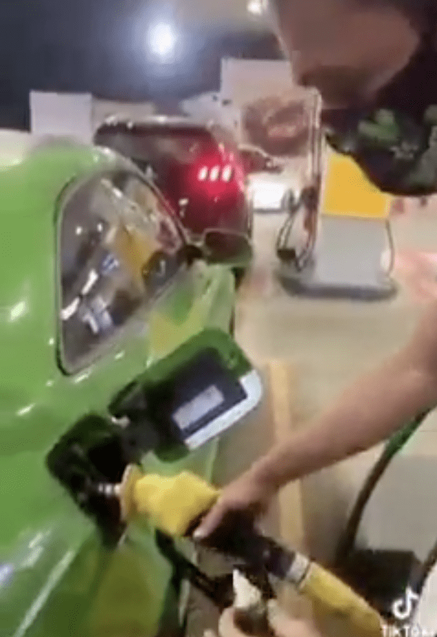 A man became the epitome of this temptation in a viral video posted by @twtbikers on Twitter, where he was seen pouring a bottle of octane booster directly into the fuel nozzle.