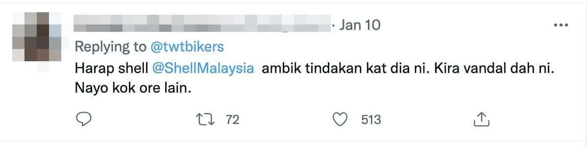 Many also called upon Shell Malaysia to take action against the man for destroying public facilities.
