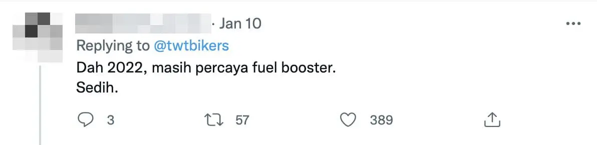 One incredulous netizen wrote, “It’s 2022 and there are still people who believe in fuel boosters. Sad.”