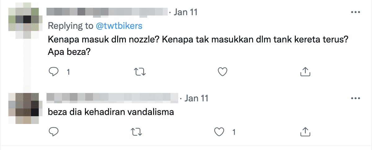 Many netizens were annoyed by the man’s selfishness in contaminating the petrol station’s fuel supply by pouring octane booster right into the nozzle.