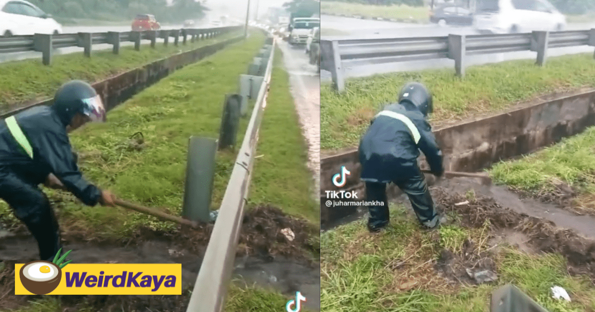 TikTok user @juharmariankha recently posted a video showing a man braving the heavy rain while digging a pathway to let floodwaters flow into the the roadside drain along the Pasir Gudang highway.