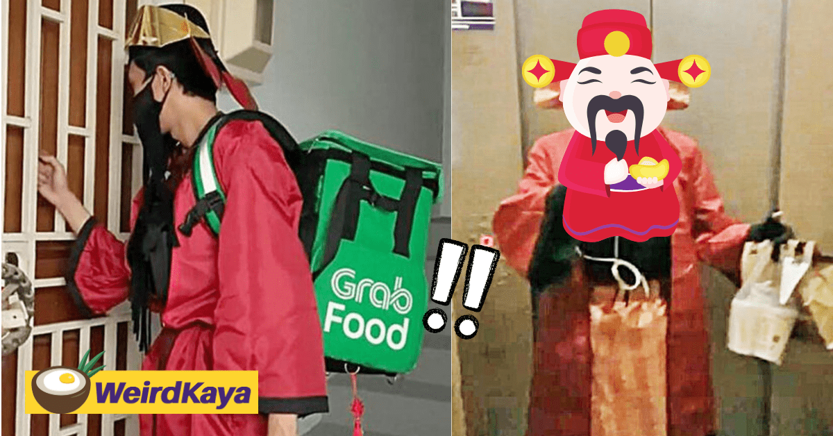 SINGAPORE – A 23-year-old Malay man named Ofa got many talking with his dressing up as the God of Fortune during his food delivery duties.