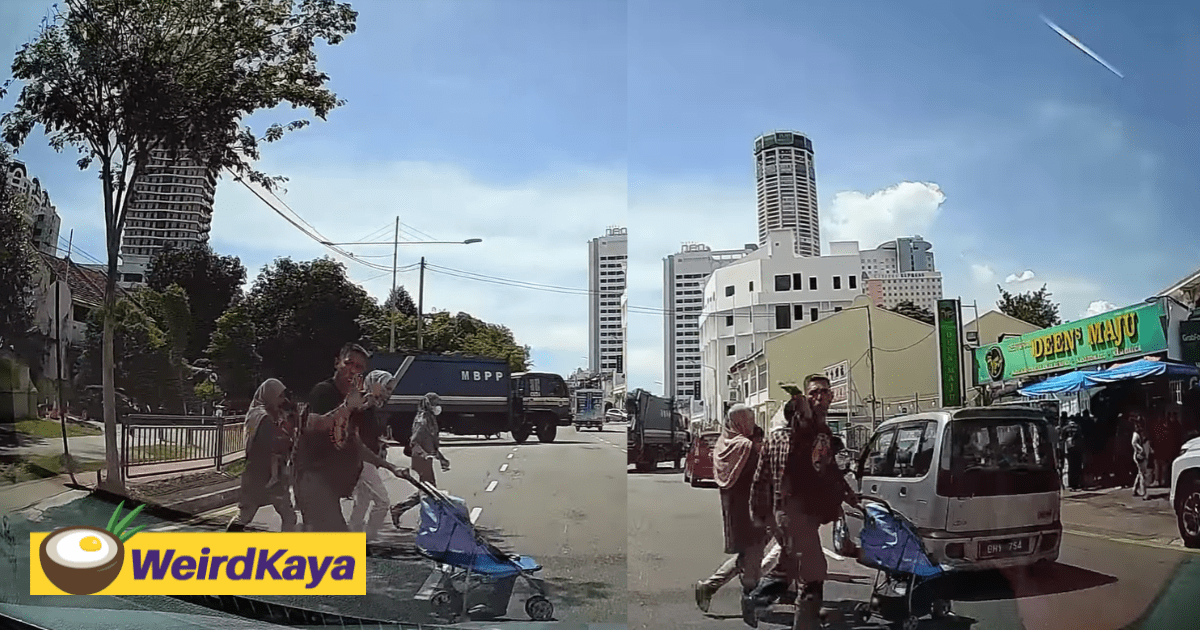 In an 11-second video posted on Facebook by Ah Wen on Monday (June 13), she was driving along Jalan Gurdwara when the man suddenly pushed a baby pram out into the road, forcing her to slam the brakes.