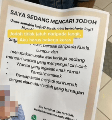 On the banner, it said that Ariff was looking for a soulmate and included his social media handles where potential girlfriends can contact him.