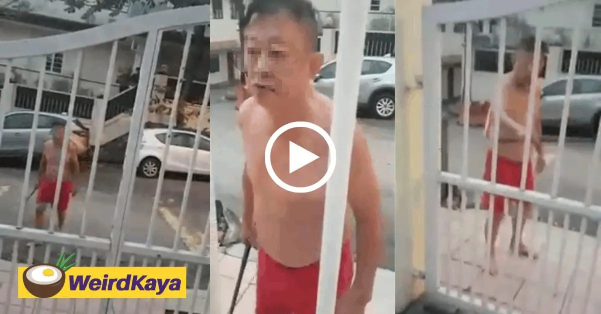 A 4-minute video showing a half-naked man holding a metal rod shouting angrily at a woman, believed to be the man’s neighbour, has gone viral on Facebook yesterday (April 8).