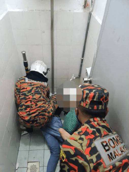 He later contacted the Fire and Rescue Department at 4.46 pm for help, leaving the man sitting helplessly by the toilet bowl.