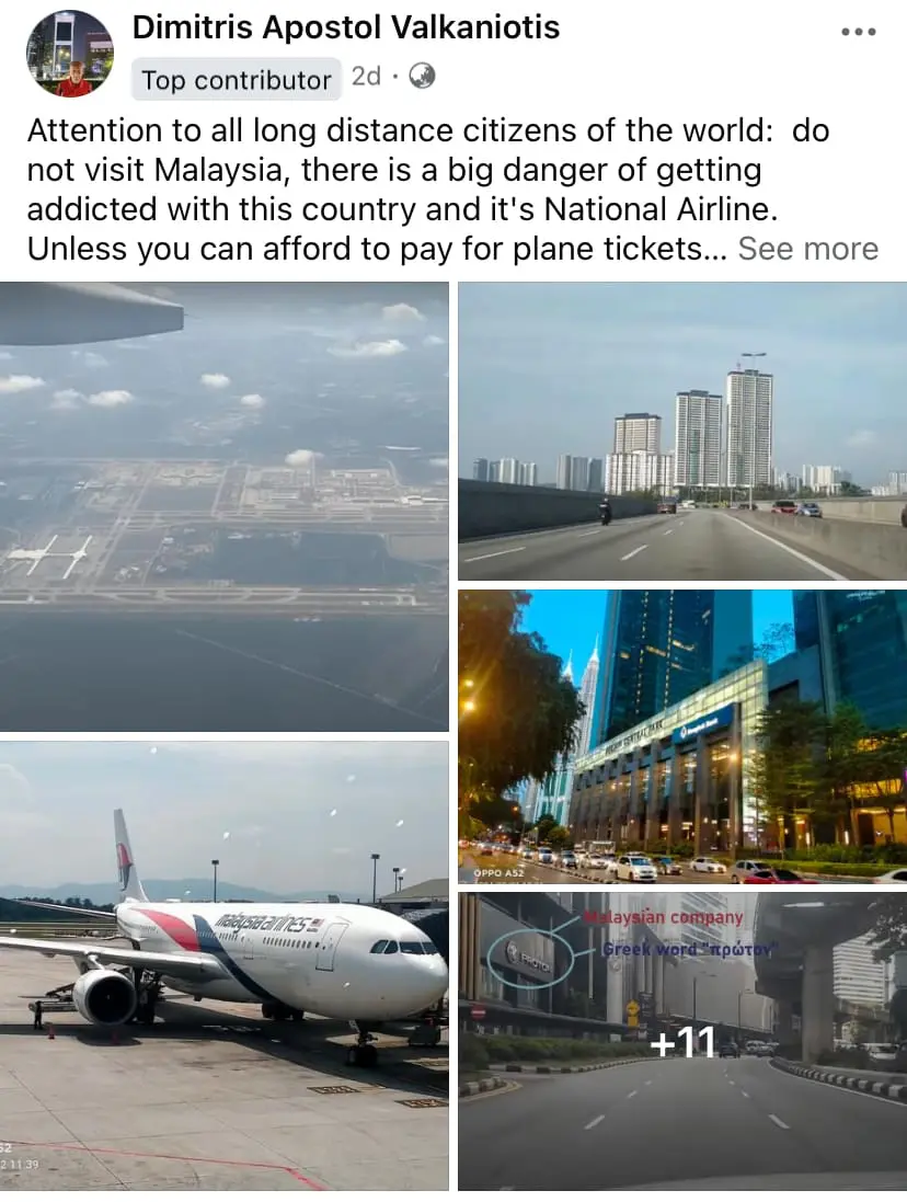 “Attention to all long-distance citizens of the world: do not visit Malaysia, there is a big danger of getting addicted to this country and its National Airline.