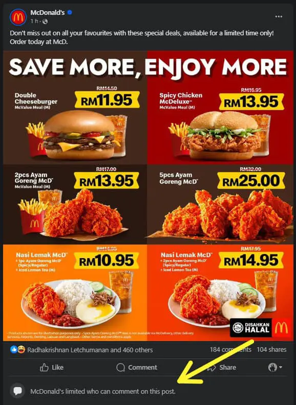 After receiving some unfavorable feedback from netizens, McDonald’s Malaysia has once again opted to restrict comments on this post, as they did previously.