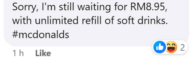 “Sorry, I’m still waiting for RM8.95, with unlimited refill of soft drinks.”