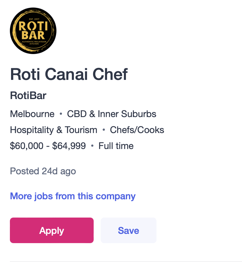 In a job advertisement posted on the job portal Seek, the restaurant named Roti Bar on Little Collins Street claims to offer one of the finest Malaysian cuisine in the area and even went as far as to state that it takes great pride in making roti canai.