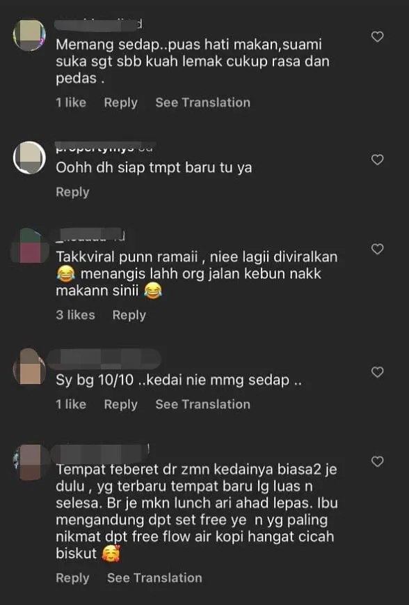 Meninjau ke ruangan komen, wargamaya terliur melihat keenakan gulai masak lemak tersebut dan ada juga yang meninggalkan komen-komen positif terhadap restoran terbabit.