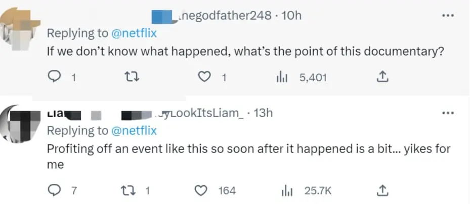 On the other hand, some felt that Netflix was merely milking some cash off the pain of those who lost their loved ones to the tragedy.