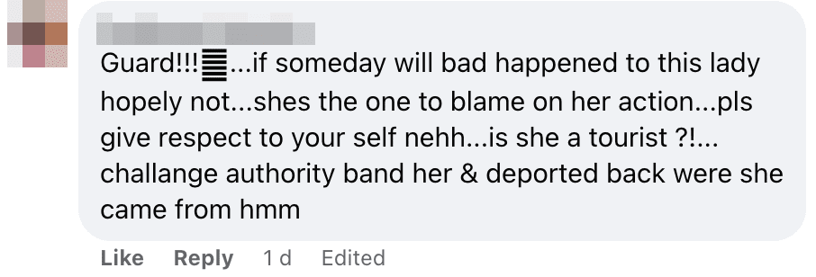 However, some demanded heavier action to be taken against her and called for deportation as she had embarrassed Malaysia in a foreign country.