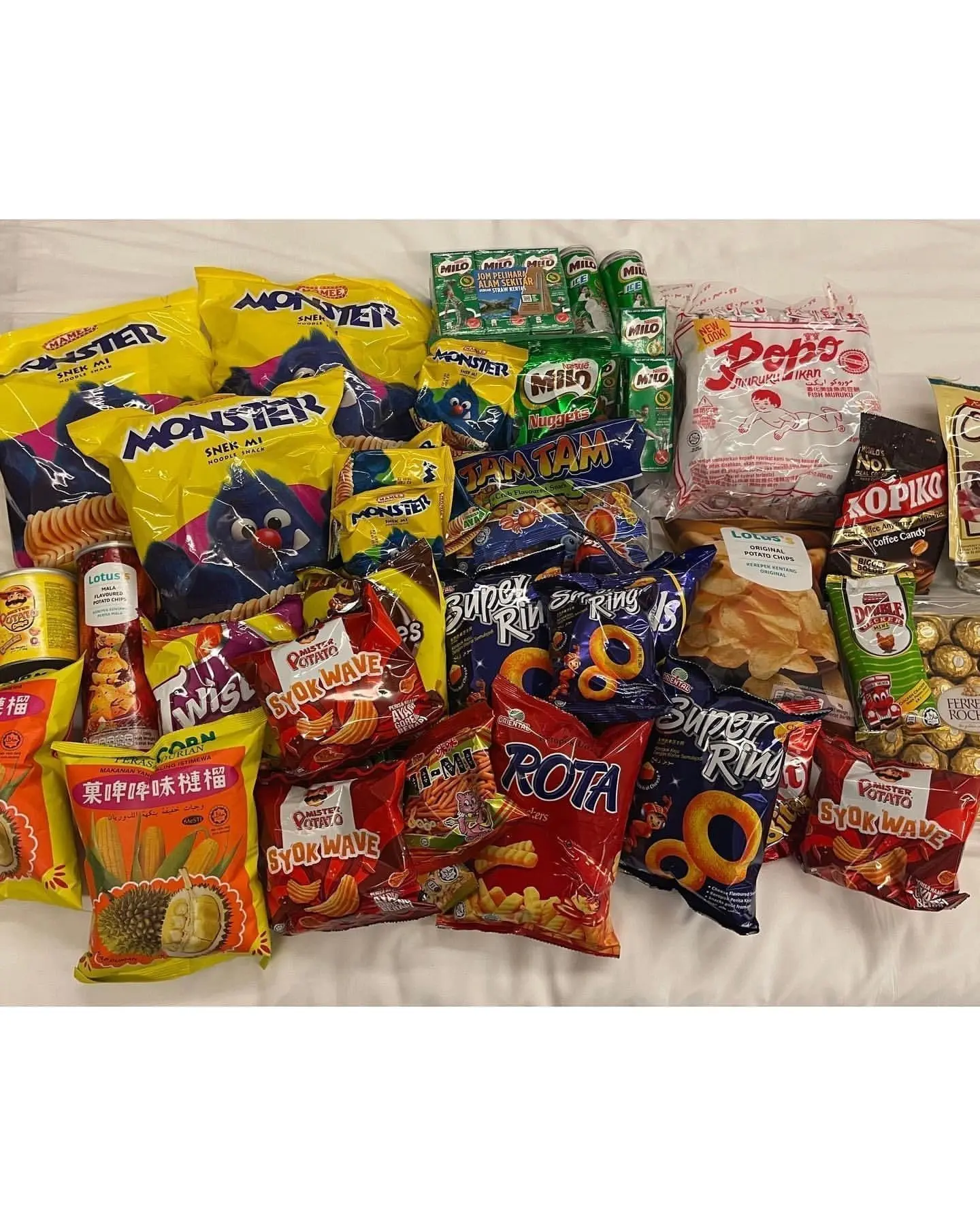 From the photos posted by Chen, we can see that Malaysians have loaded her with lots of our childhood snacks such as Popo muruku, Mamee Monster, Rota, Super Ring and many more.