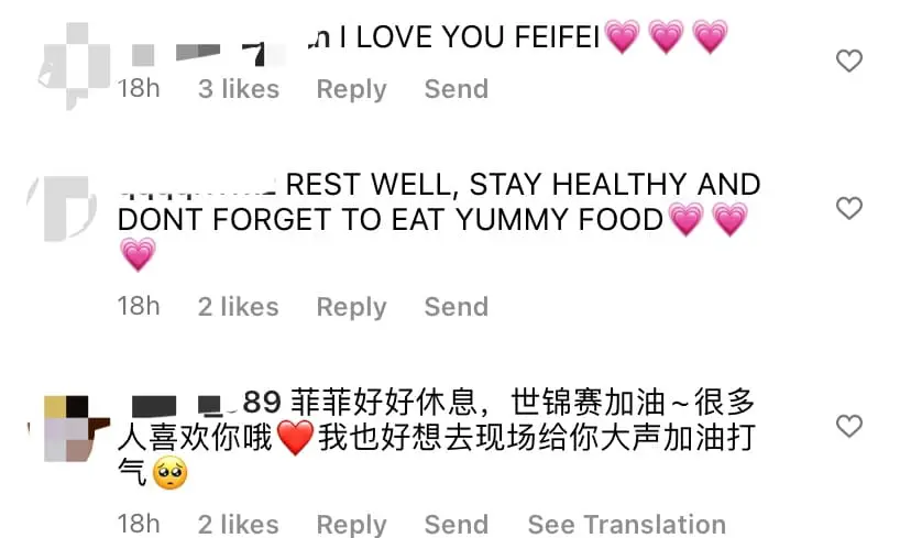 They also left Chen with many messages advising her to take care of herself before she prepares for the next tournament.