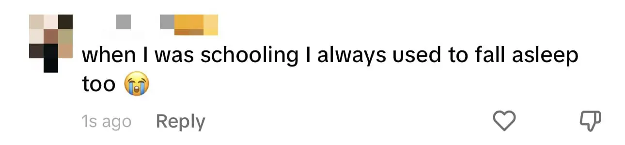‘When I was schooling I always used to fall asleep too!’