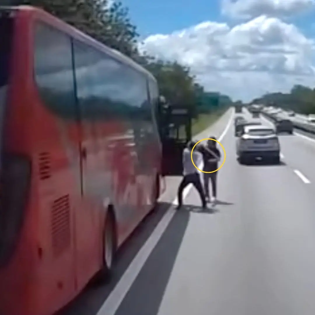 A long-distance bus driver was attacked by two furious men after he accidentally rear-ended their car on the North-South Expressway, and the whole thing was caught on a dashcam.
