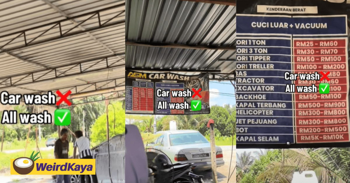 TikTok user @syagreyyy posted a video showcasing the car wash’s banner, which lists prices for cleaning various heavy-duty vehicles and other “special” vehicle.