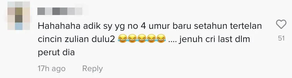 “My youngest sibling, who is the fourth child and only one year old at the time, once swallowed a gold ring! 😂😂😂 It was quite a challenge to locate it inside their stomach.”