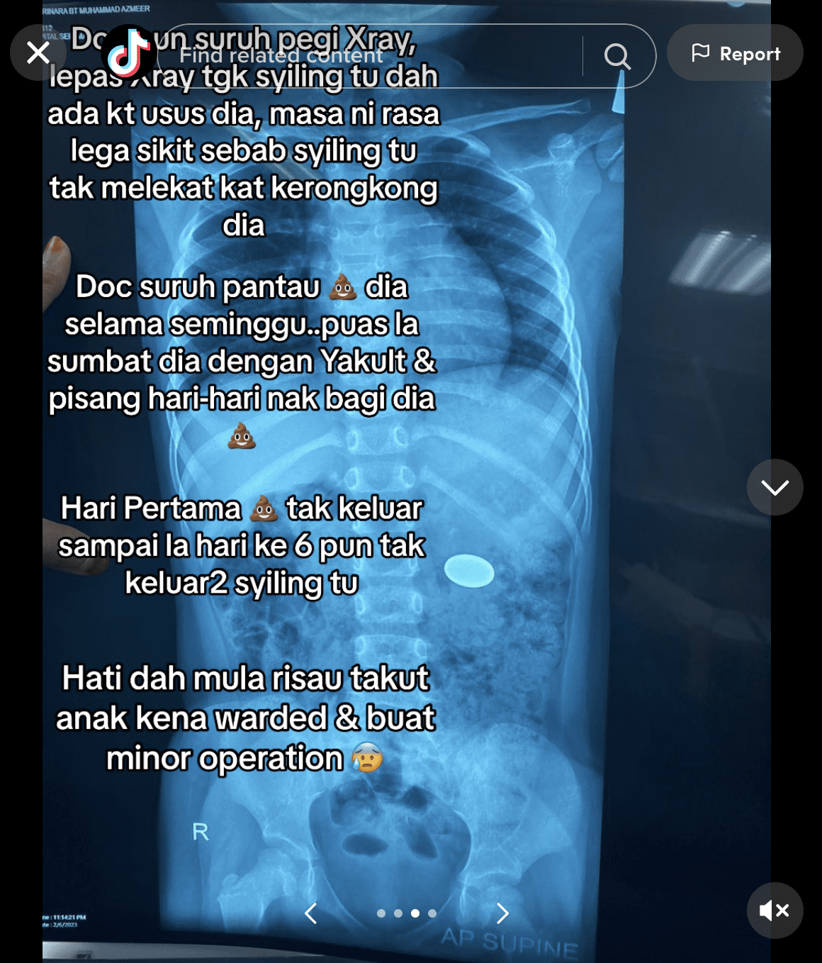 Azmeer explained that the doctor immediately conducted an X-ray scan to determine the position of the coin, which was found in the intestine.