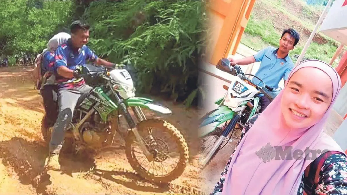 Muhammad Haqqi Annazili Rusdi, 29, and his wife, Noor Syazwanie Mohamad, 26, traverse 40km on a dirt bike every week to reach their workplace, Sekolah Kebangsaan (SK) Bihai in Gua Musang, according to Kosmo.