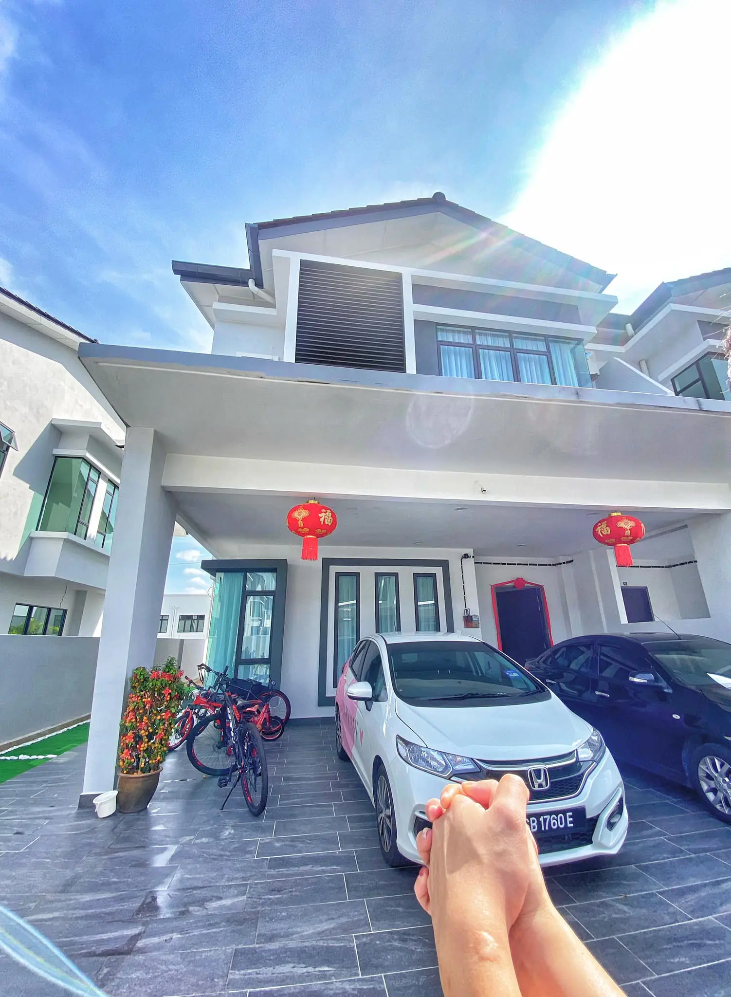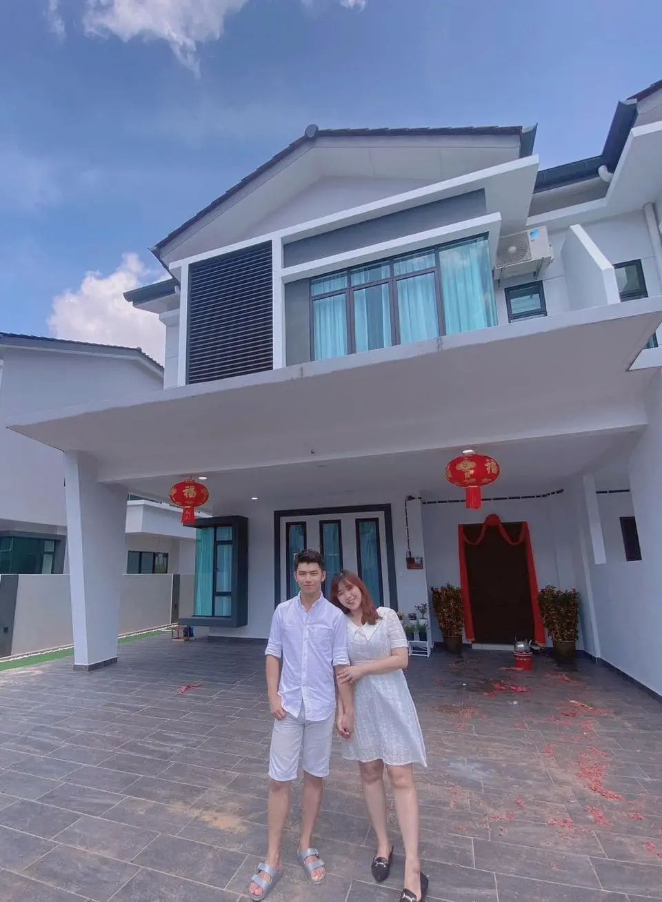 In a Facebook post, Dora posted a photo of her holding her husband’s hand in front of their brand new house.