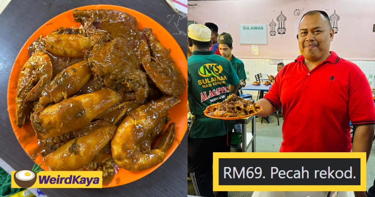 Nasi Kandar Sulaiman, located in Penang, revealed on social media that a customer has spent a staggering RM69 on a single Nasi Kandar meal, setting a new record for the highest purchase in the restaurant’s history.