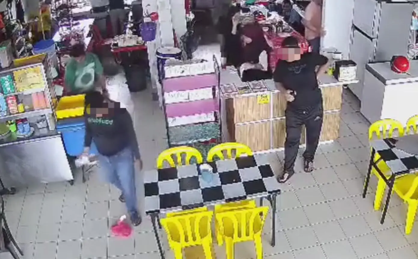The shocking incident unfolded at a local restaurant and was recorded by the establishment’s surveillance cameras.