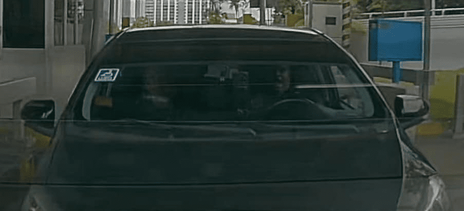 The video, uploaded on Facebook at 1:42pm on August 15, shows the car closely tailgating another vehicle through the toll plaza.