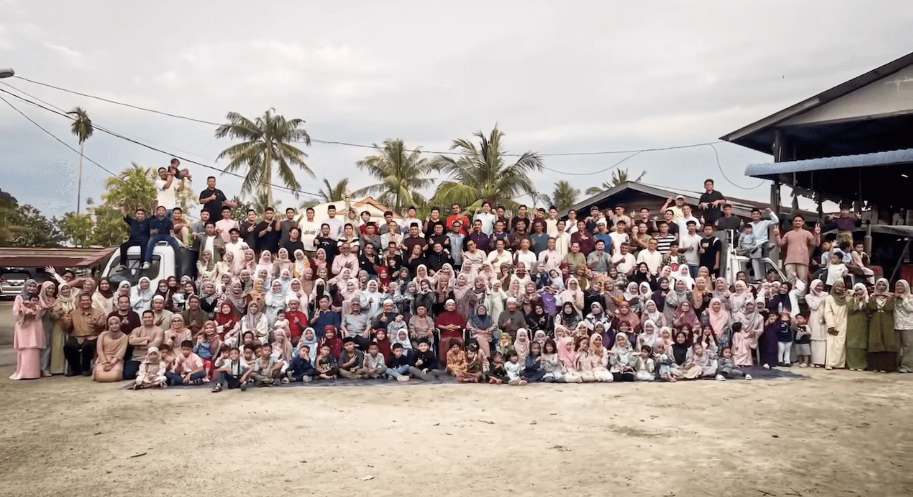 While most of us struggled to organise dinner with just five cousins, one Malaysian family in Penaga, Penang, managed to gather five generations with 250 people for a massive Hari Raya group photo.