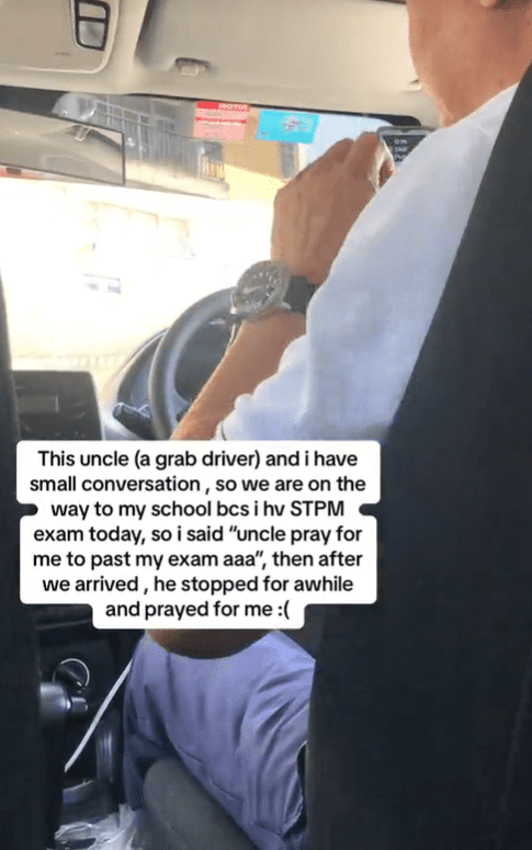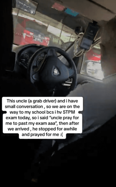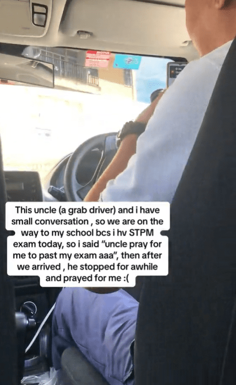 One Grab driver went the extra mile to assure and comfort a student who was sitting for her STPM exam by praying with her after sending her to school.