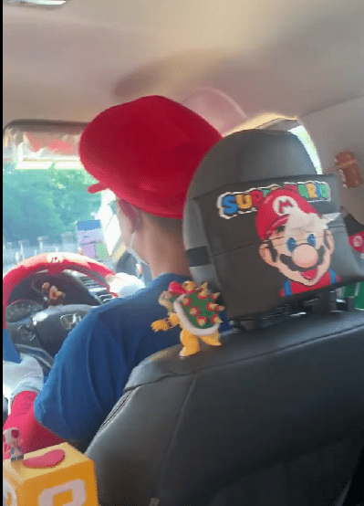 The car was full of fun toys and it was only when they saw the hat that they realized the driver’s outfit. It was a surprisingly fun moment that brightened their day.