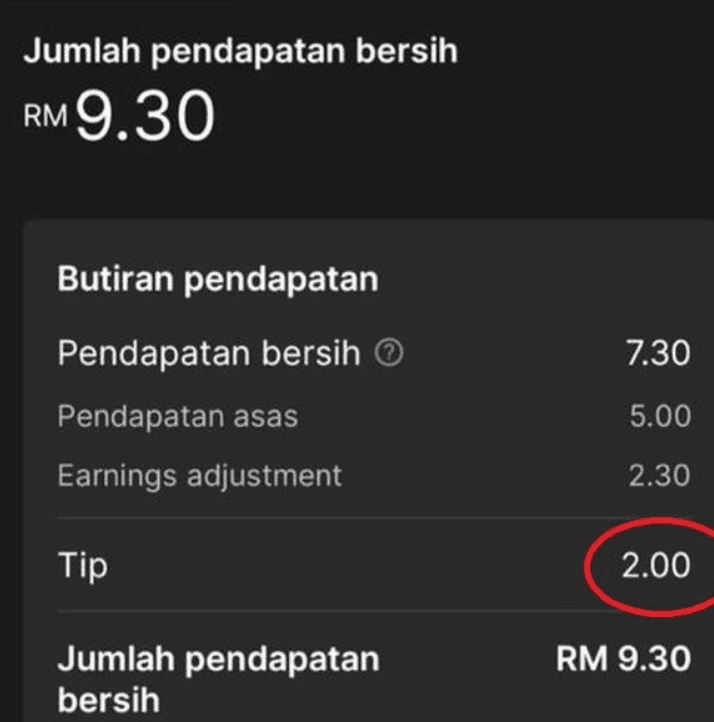 To his astonishment, he found out that Nazurah had also tipped him. Even though the tip was small, he appreciated the gesture as it demonstrated her recognition of the hard work that delivery riders put into their jobs.